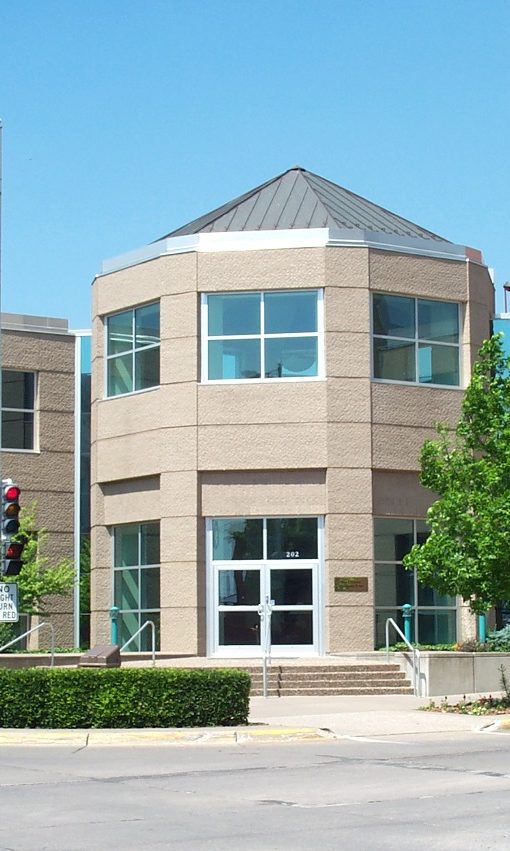 Located at 202 Iowa Avenue, at the corner of Second Street in downtown Muscatine.